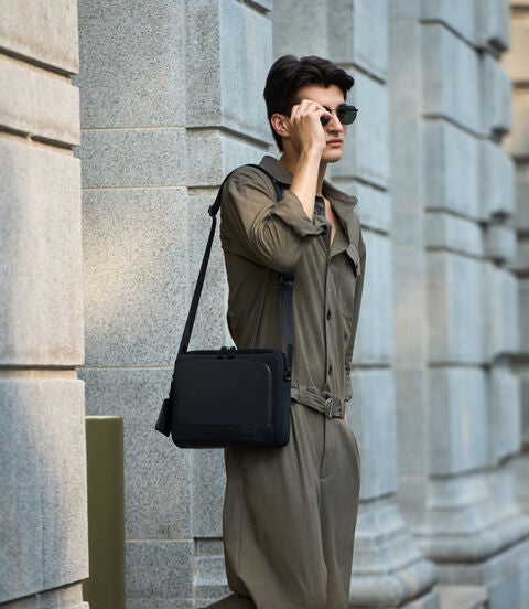 這款輕便斜背包非常適合旅行時隨身攜帶必需品。巧妙的口袋設計讓您的錢包、工作文件甚至平板電腦都井然有序。